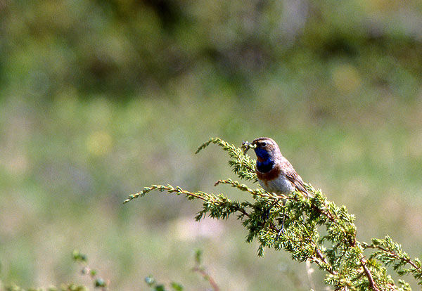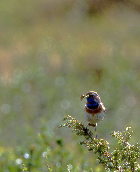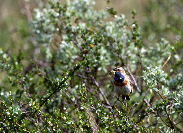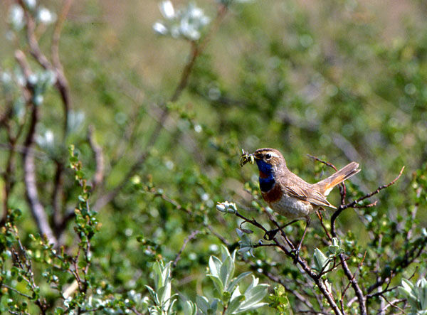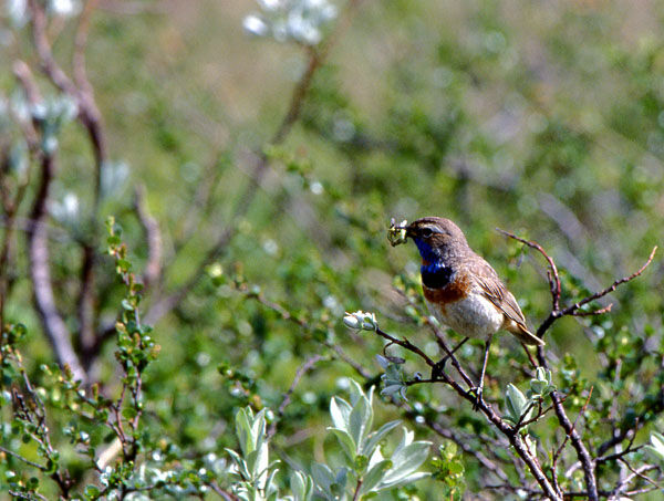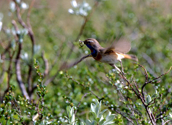 Blåhaken är en underbar liten fågel. Den brukar också kallas för "fjällens näktergal" pga sin vackra sång. När ungarna har kläckts är det bråda dagar. Björkmätarlarver bl a är bra mat för ungarna.