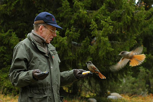Lavskrikornas skog är en fjällnära urskog med höga granar och med inslag av skägglav. Har man tur kan man få möta dessa fåglar här. Har man något gott att bjuda på kan mötet bli riktigt nära.